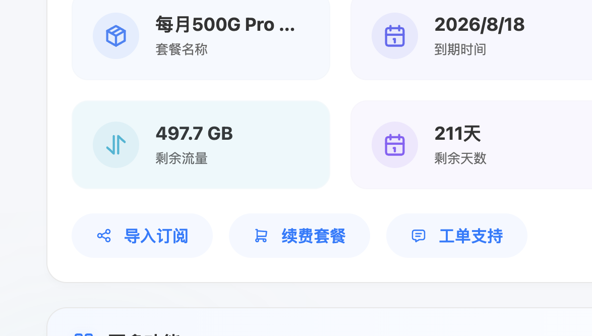 3. 打開我們的官網並登入;进入仪表盘。点击导入订阅。
