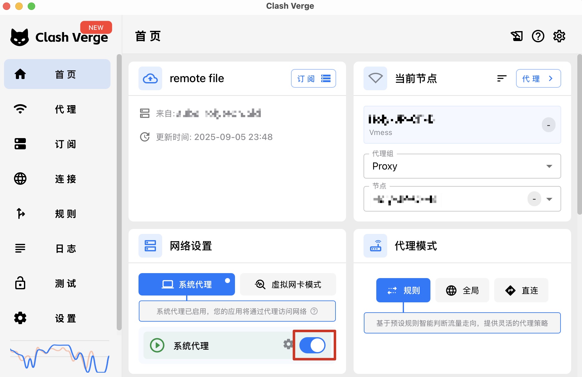 右側 代理模式 可以隨時切換選擇“規則”“全局”和“直連”。