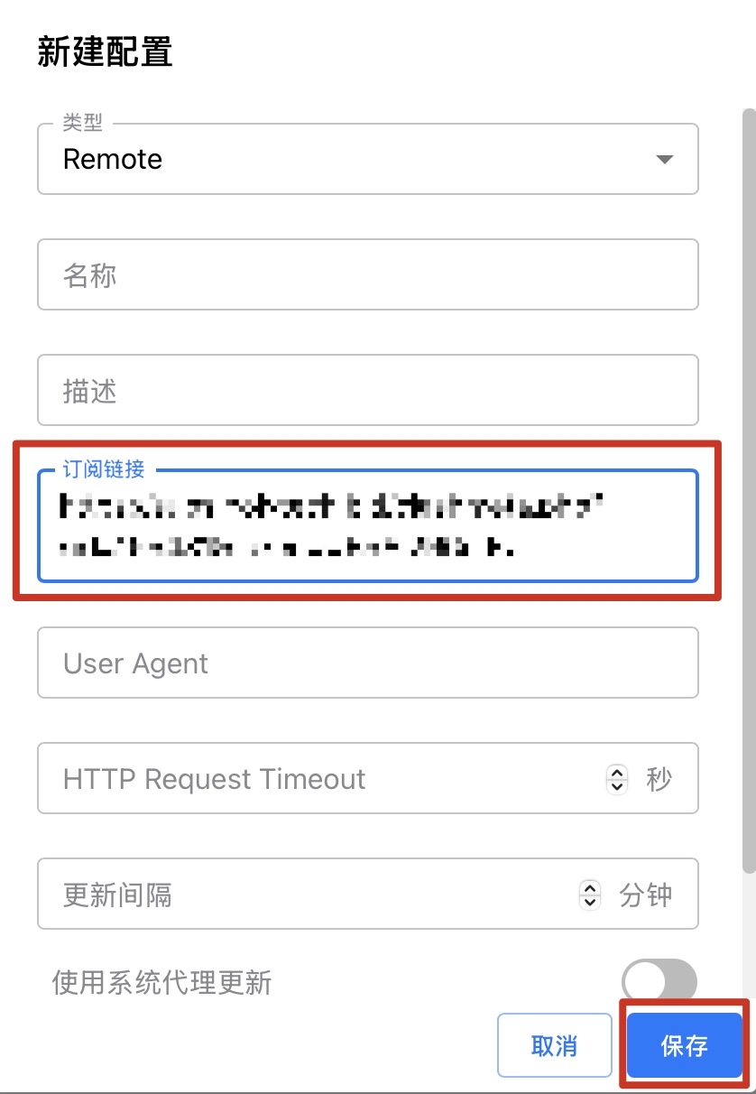5. 此時,已添加好了訂閱地址,可以點擊刷新按鈕更新至最新配置,並且需要點擊選中需要使用的 Profile,使得圖標變為藍色。