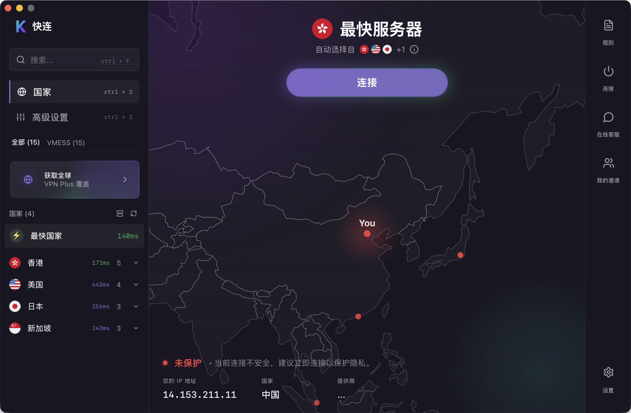 如果你是新用户。没有购买流量 请点击左侧的 “获取全球” 按钮