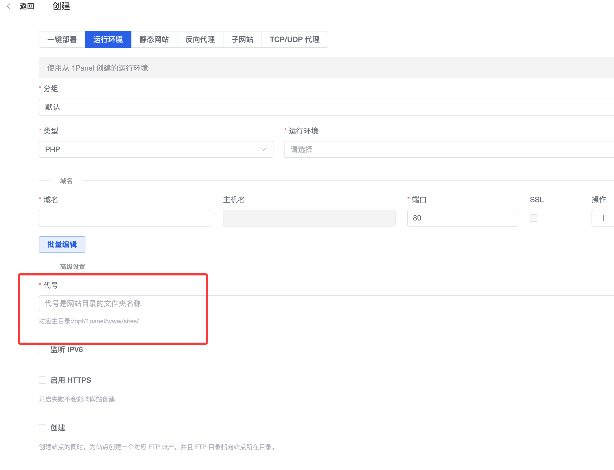 对应主目录:/opt/1panel/www/sites/